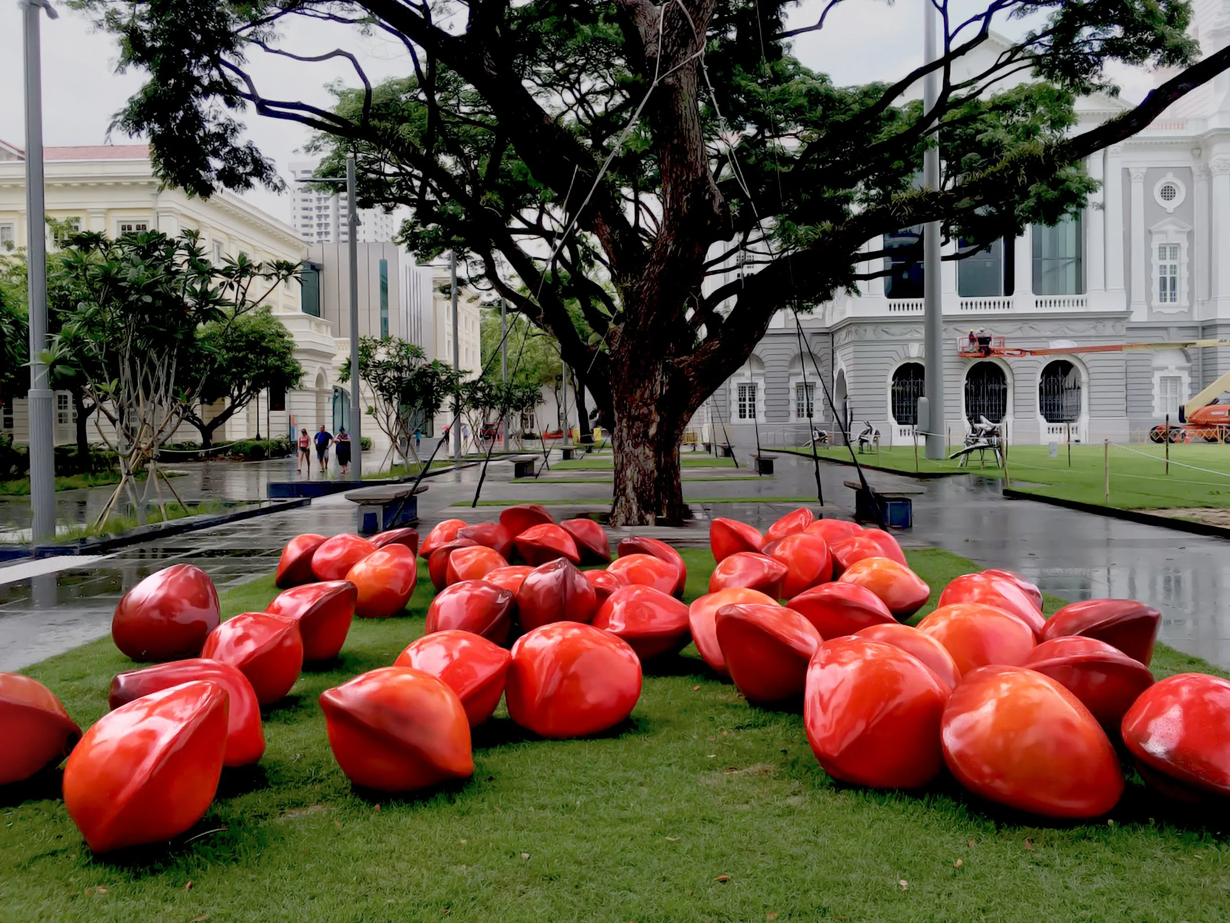 Saga seeds are deeply rooted in Singapore’s history and heritage. For SG50, Kumari displayed 50 blown-up crimson red saga seeds in fiberglass, scattering them throughout Empress Lawn. Each seed represented a year of Singapore’s independence.